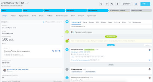 - Карточка сделки